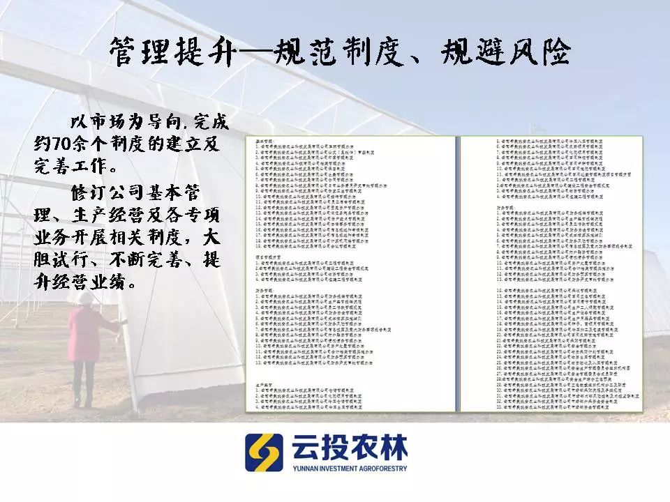 2017年,是云投农林全面深化托管青美姚安公司的一年,也是公司改革转型、项目建设、经营任务等同比较重的一年。